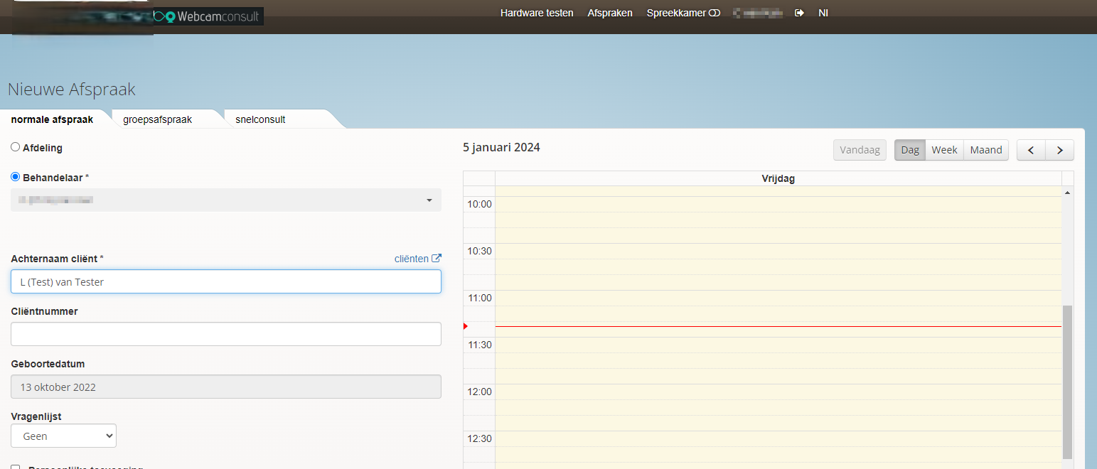 Wanneer de werknemer nog niet was toegevoegd aan Webcamconsult is deze vanaf nu ook daar zichtbaar. Daarnaast is de afspraak opgeslagen in Webcamconsult (zie hieronder).