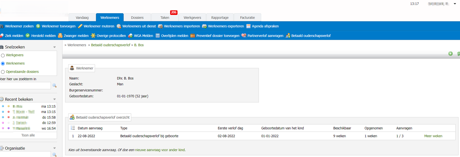 Vanaf deze release is betaald ouderschapsverlof ook op te voeren in VerzuimSignaal.
